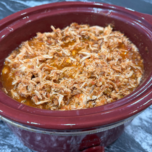 - Shred the chicken using two forks or a potato masher and stir to combine with the salsa.